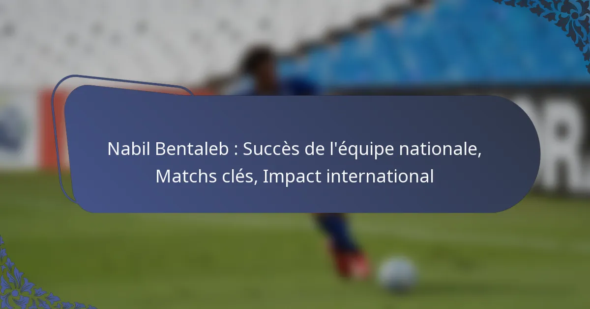 Nabil Bentaleb : Succès de l’équipe nationale, Matchs clés, Impact international